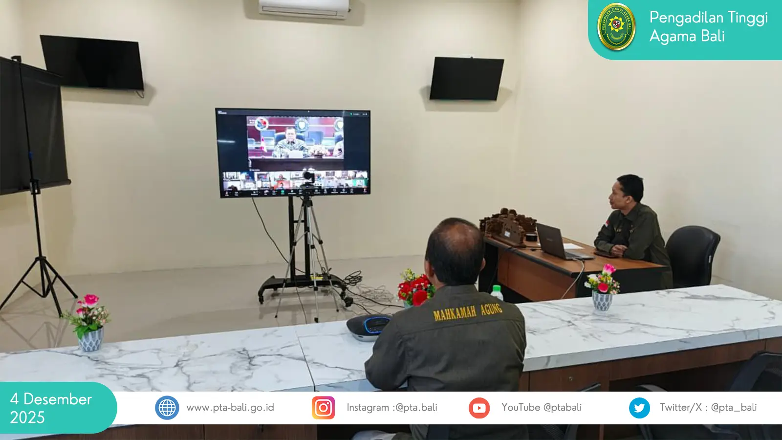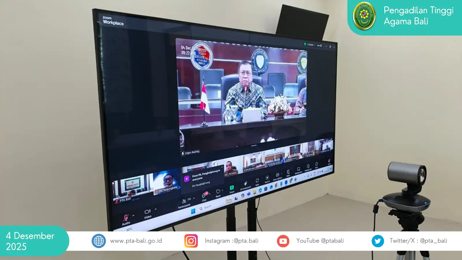 Kegiatan tersebut dilaksanakan pada Kamis, 4 Desember 2025, dan diikuti oleh Sekretaris PTA Bali secara daring dari Ruang Command Center Pengadilan Tinggi Agama Bali.