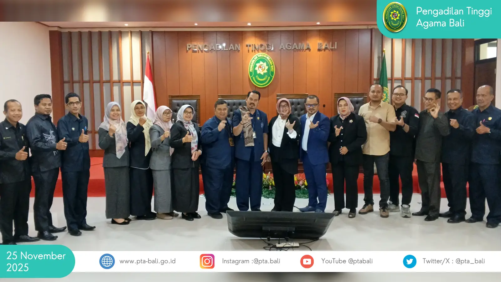 Selasa, 25 November 2025 – Pengadilan Tinggi Agama (PTA) Bali menyelenggarakan kegiatan Sosialisasi Program Doktor bekerja sama dengan Universitas Islam Sultan Agung (UNISSULA) Semarang, bertempat di Aula PTA Bali. Kegiatan ini diikuti oleh seluruh aparatur PTA Bali serta Ketua, Wakil Ketua, dan Hakim Tingkat Pertama dari Pengadilan Agama se-Wilayah PTA Bali.